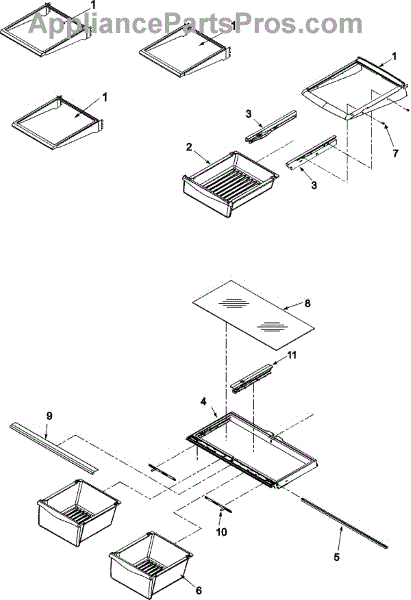 This refrigerator crisper cover glass sits above the produce drawers to create a solid shelf and help the bins seal properly. Replace cracked or missing glass to restore safe storage space and consistent crisper performance.