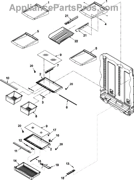 A replacement pantry divider that helps separate and stabilize items on the refrigerator pantry shelf for neater storage and fewer tipped containers. Restores proper spacing and organization inside the pantry area. What it does: