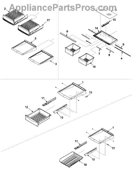 This refrigerator deli pan is the slide-out bin in the fresh food section for meats and cheeses. Replace a cracked, broken, or missing pan to restore organized storage and smooth, reliable drawer movement.