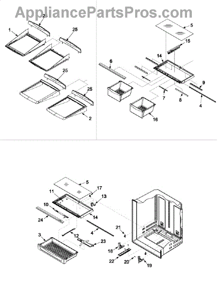 The Crisper Shelf Frame is an OEM part for Whirlpool side-by-side refrigerators. It provides sturdy tracked support for organizing vegetables and other produce items in the crisper drawers. The glass and center support are NOT included and must be ordered separately.