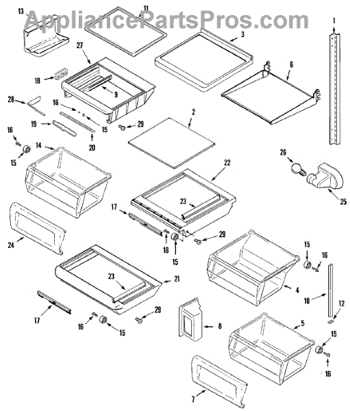 This crisper shelf support is the side-wall bracket that holds the glass shelf/cover above the produce drawers. Replacing a cracked support restores a level shelf and smooth crisper drawer operation.