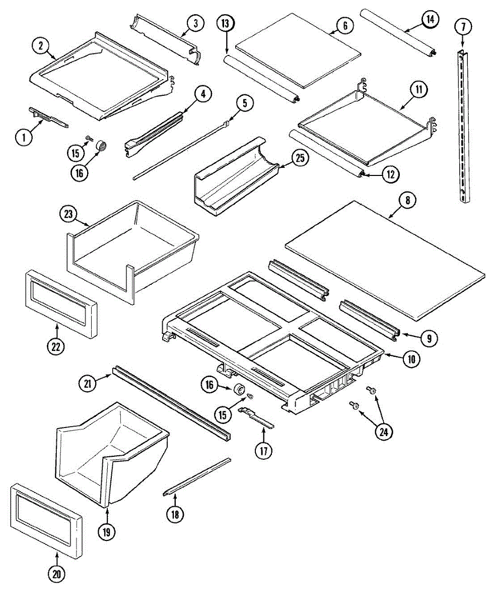This glass crisper shelf replaces a cracked or missing refrigerator crisper shelf to restore a flat, stable surface for produce storage. It provides a clear, durable platform that supports the crisper drawer and items stored above it. What it does: