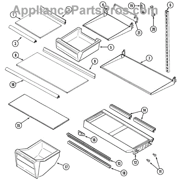 This glass crisper shelf replaces a cracked or missing refrigerator crisper shelf to restore a flat, stable surface for produce storage. It provides a clear, durable platform that supports the crisper drawer and items stored above it. What it does: