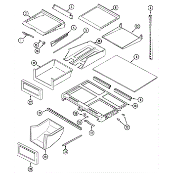 This right-side rail supports and guides the refrigerator's meat/deli drawer for smooth, level operation. Replace a cracked or worn rail to restore proper drawer movement and prevent tipping or spills.