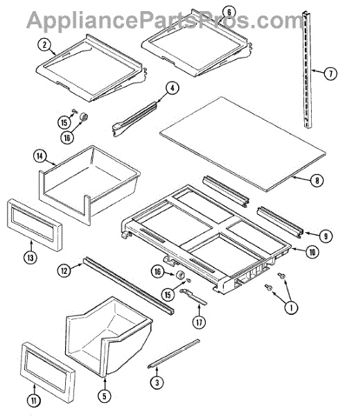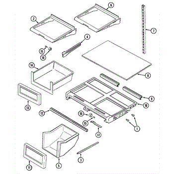 This right-side rail supports and guides the refrigerator's meat/deli drawer for smooth, level operation. Replace a cracked or worn rail to restore proper drawer movement and prevent tipping or spills.