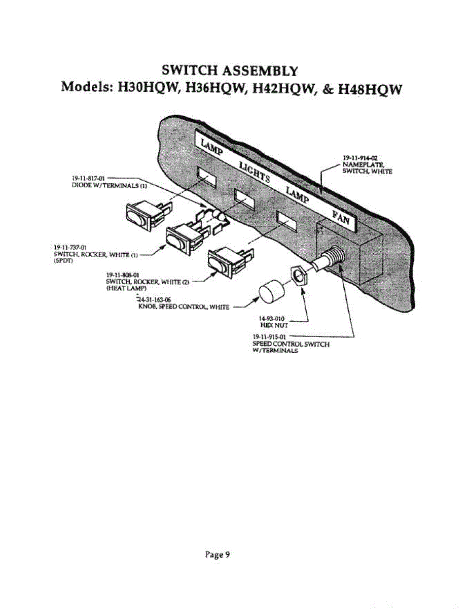 Parts for Thermador H48HQW: 09 - Switch Assembly Parts