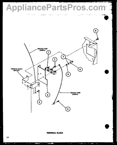 This terminal block connects the appliance to household power, providing a secure point for the incoming power cord wires. Replacing a damaged terminal block restores a solid electrical connection and reduces fire risk. What it does:
