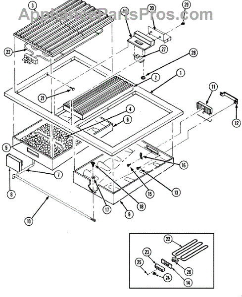 This rock plate support is used on many of the Jenn-air grill cartridge rock plates.