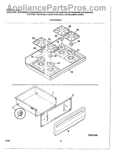Parts for Frigidaire GGF354BHDC: 09 - Top / Drawer Parts