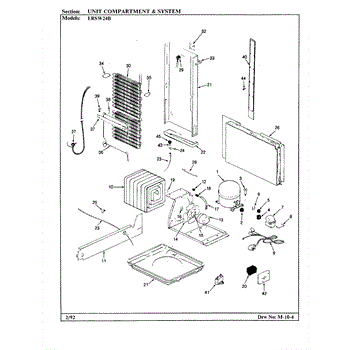 Plastic defrost pan. Evaporator pan hangs from side rails and rests on compressor.