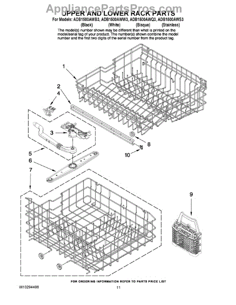 Note: New rack no longer includes removable tines or cup shelf. This part is a lower dishrack. The lower dishrack is the lower shelf of a dishwasher that holds plates, bowls, and utensils. To remove the old dishrack, simply pull it out and lift the wheels up from its track. Set it off the side, and lift the new dishrack. Slide it into its track and make sure it is locked in. If it is gliding in and out in a smooth way, it has been installed properly.This genuine replacement OEM part is sold individually and is compatible with Whirlpool brands include Whirlpool, Maytag, KitchenAid, Jenn-Air, Amana, Magic Chef, Admiral, Norge, Roper, and Sears/Kenmore brand appliances.