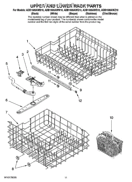 Note: New rack no longer includes removable tines or cup shelf. This part is a lower dishrack. The lower dishrack is the lower shelf of a dishwasher that holds plates, bowls, and utensils. To remove the old dishrack, simply pull it out and lift the wheels up from its track. Set it off the side, and lift the new dishrack. Slide it into its track and make sure it is locked in. If it is gliding in and out in a smooth way, it has been installed properly.This genuine replacement OEM part is sold individually and is compatible with Whirlpool brands include Whirlpool, Maytag, KitchenAid, Jenn-Air, Amana, Magic Chef, Admiral, Norge, Roper, and Sears/Kenmore brand appliances.