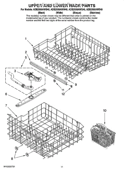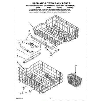 Note: New rack no longer includes removable tines or cup shelf. This part is a lower dishrack. The lower dishrack is the lower shelf of a dishwasher that holds plates, bowls, and utensils. To remove the old dishrack, simply pull it out and lift the wheels up from its track. Set it off the side, and lift the new dishrack. Slide it into its track and make sure it is locked in. If it is gliding in and out in a smooth way, it has been installed properly.This genuine replacement OEM part is sold individually and is compatible with Whirlpool brands include Whirlpool, Maytag, KitchenAid, Jenn-Air, Amana, Magic Chef, Admiral, Norge, Roper, and Sears/Kenmore brand appliances.