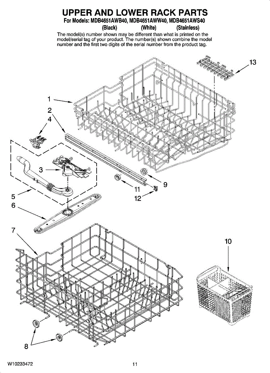 Replacement silverware basket for dishwashers. Holds and organizes utensils during wash cycles. Replace if cracked, broken, or falling apart.