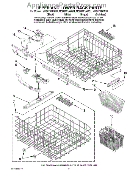Note: New rack no longer includes removable tines or cup shelf. This part is a lower dishrack. The lower dishrack is the lower shelf of a dishwasher that holds plates, bowls, and utensils. To remove the old dishrack, simply pull it out and lift the wheels up from its track. Set it off the side, and lift the new dishrack. Slide it into its track and make sure it is locked in. If it is gliding in and out in a smooth way, it has been installed properly.This genuine replacement OEM part is sold individually and is compatible with Whirlpool brands include Whirlpool, Maytag, KitchenAid, Jenn-Air, Amana, Magic Chef, Admiral, Norge, Roper, and Sears/Kenmore brand appliances.