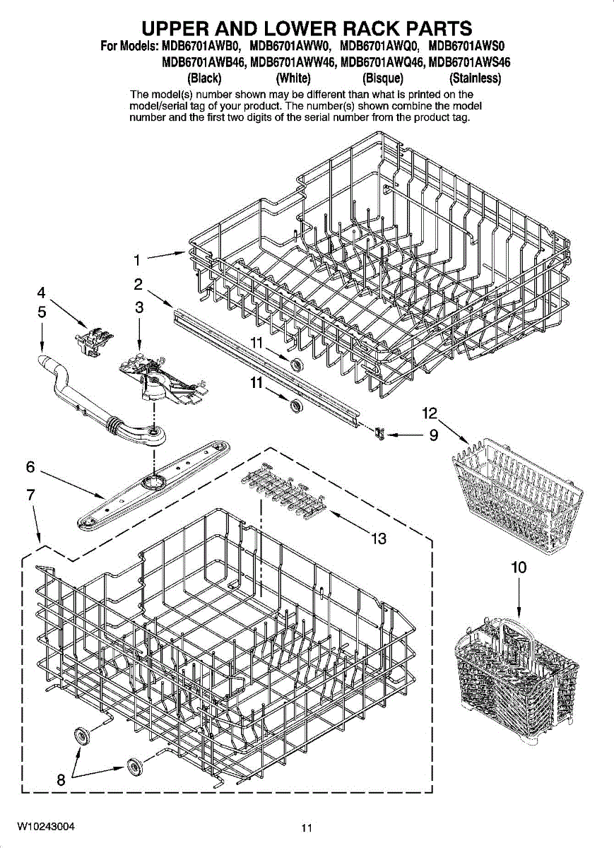 Replacement silverware basket for dishwashers. Holds and organizes utensils during wash cycles. Replace if cracked, broken, or falling apart.
