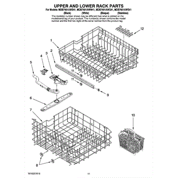 Note: New rack no longer includes removable tines or cup shelf. This part is a lower dishrack. The lower dishrack is the lower shelf of a dishwasher that holds plates, bowls, and utensils. To remove the old dishrack, simply pull it out and lift the wheels up from its track. Set it off the side, and lift the new dishrack. Slide it into its track and make sure it is locked in. If it is gliding in and out in a smooth way, it has been installed properly.This genuine replacement OEM part is sold individually and is compatible with Whirlpool brands include Whirlpool, Maytag, KitchenAid, Jenn-Air, Amana, Magic Chef, Admiral, Norge, Roper, and Sears/Kenmore brand appliances.
