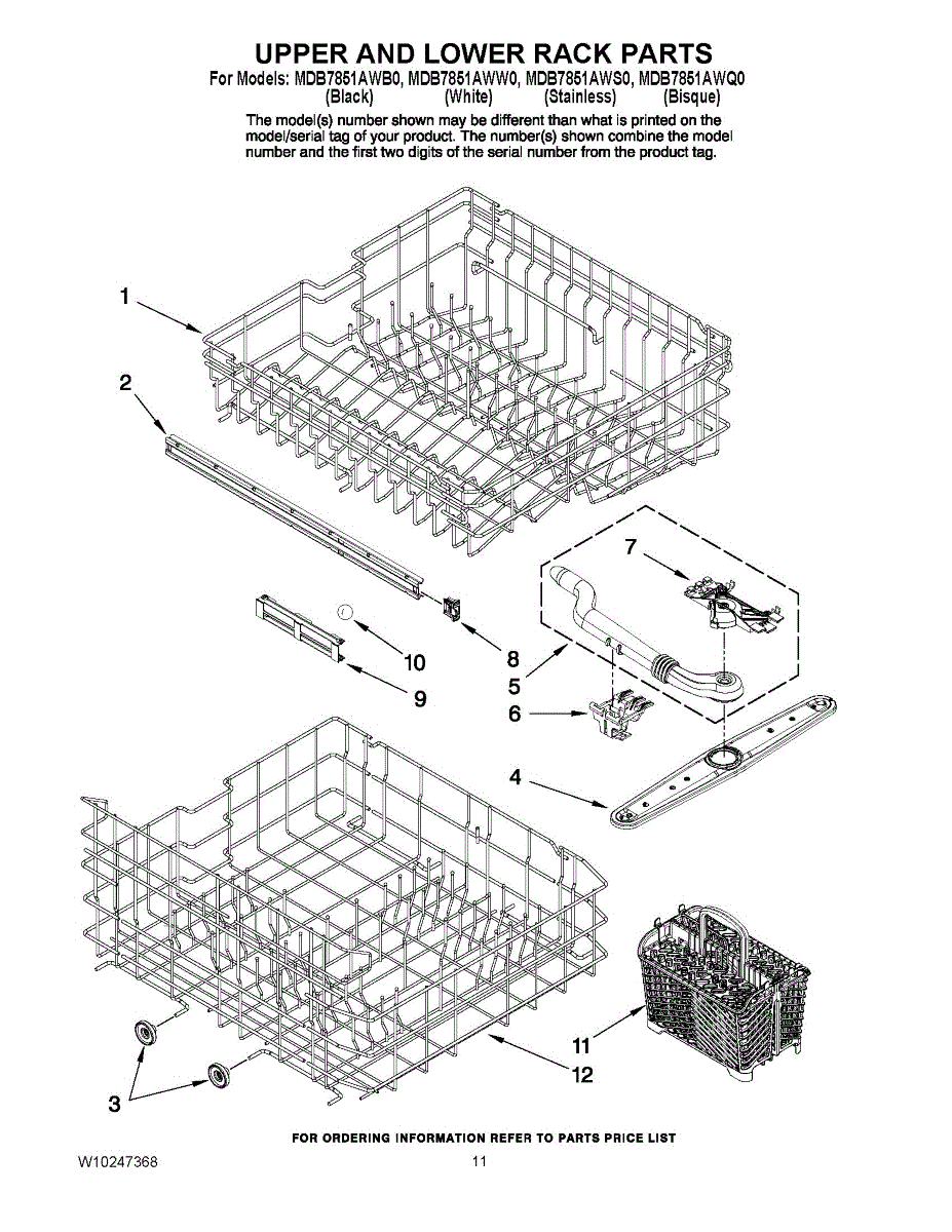Parts for Maytag MDB7851AWS0: 09 - Upper And Lower Rack Parts