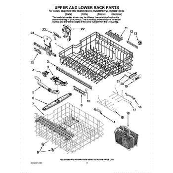 Note: New rack no longer includes removable tines or cup shelf. This part is a lower dishrack. The lower dishrack is the lower shelf of a dishwasher that holds plates, bowls, and utensils. To remove the old dishrack, simply pull it out and lift the wheels up from its track. Set it off the side, and lift the new dishrack. Slide it into its track and make sure it is locked in. If it is gliding in and out in a smooth way, it has been installed properly.This genuine replacement OEM part is sold individually and is compatible with Whirlpool brands include Whirlpool, Maytag, KitchenAid, Jenn-Air, Amana, Magic Chef, Admiral, Norge, Roper, and Sears/Kenmore brand appliances.
