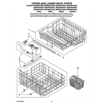 Note: New rack no longer includes removable tines or cup shelf. This part is a lower dishrack. The lower dishrack is the lower shelf of a dishwasher that holds plates, bowls, and utensils. To remove the old dishrack, simply pull it out and lift the wheels up from its track. Set it off the side, and lift the new dishrack. Slide it into its track and make sure it is locked in. If it is gliding in and out in a smooth way, it has been installed properly.This genuine replacement OEM part is sold individually and is compatible with Whirlpool brands include Whirlpool, Maytag, KitchenAid, Jenn-Air, Amana, Magic Chef, Admiral, Norge, Roper, and Sears/Kenmore brand appliances.