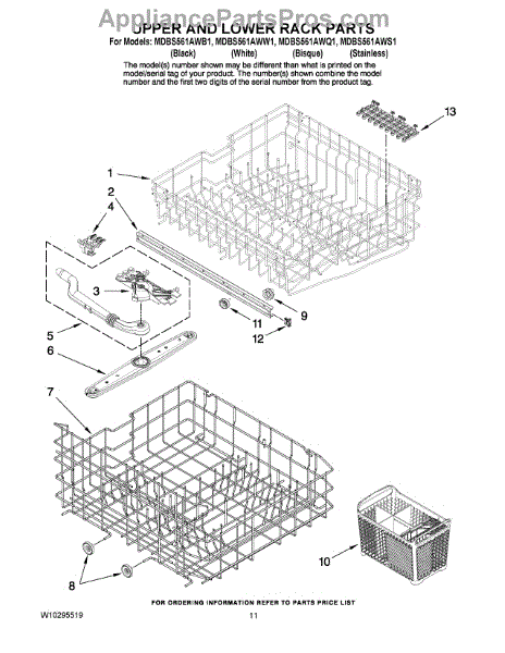 Note: New rack no longer includes removable tines or cup shelf. This part is a lower dishrack. The lower dishrack is the lower shelf of a dishwasher that holds plates, bowls, and utensils. To remove the old dishrack, simply pull it out and lift the wheels up from its track. Set it off the side, and lift the new dishrack. Slide it into its track and make sure it is locked in. If it is gliding in and out in a smooth way, it has been installed properly.This genuine replacement OEM part is sold individually and is compatible with Whirlpool brands include Whirlpool, Maytag, KitchenAid, Jenn-Air, Amana, Magic Chef, Admiral, Norge, Roper, and Sears/Kenmore brand appliances.