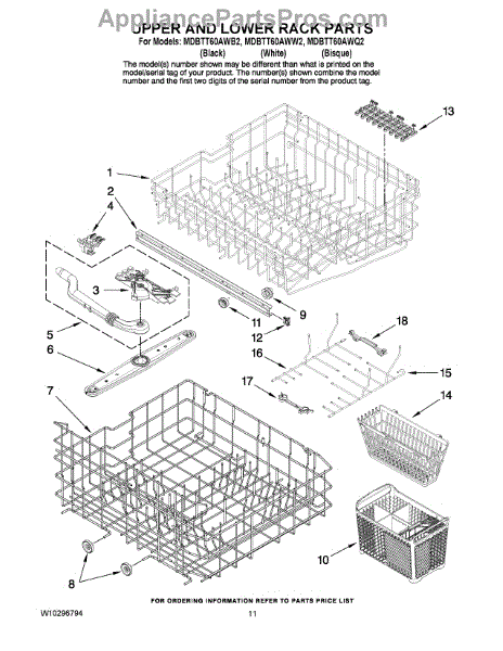 Note: New rack no longer includes removable tines or cup shelf. This part is a lower dishrack. The lower dishrack is the lower shelf of a dishwasher that holds plates, bowls, and utensils. To remove the old dishrack, simply pull it out and lift the wheels up from its track. Set it off the side, and lift the new dishrack. Slide it into its track and make sure it is locked in. If it is gliding in and out in a smooth way, it has been installed properly.This genuine replacement OEM part is sold individually and is compatible with Whirlpool brands include Whirlpool, Maytag, KitchenAid, Jenn-Air, Amana, Magic Chef, Admiral, Norge, Roper, and Sears/Kenmore brand appliances.