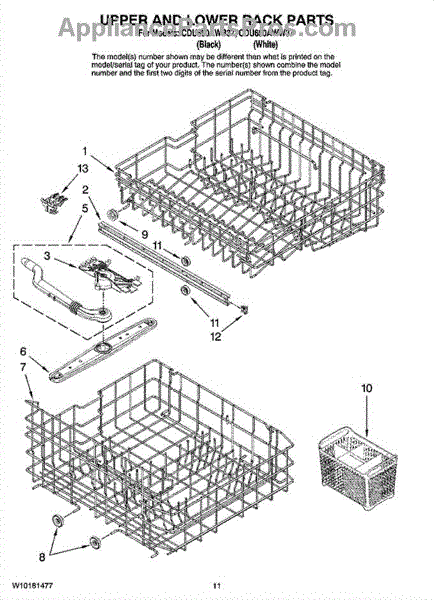 Note: New rack no longer includes removable tines or cup shelf. This part is a lower dishrack. The lower dishrack is the lower shelf of a dishwasher that holds plates, bowls, and utensils. To remove the old dishrack, simply pull it out and lift the wheels up from its track. Set it off the side, and lift the new dishrack. Slide it into its track and make sure it is locked in. If it is gliding in and out in a smooth way, it has been installed properly.This genuine replacement OEM part is sold individually and is compatible with Whirlpool brands include Whirlpool, Maytag, KitchenAid, Jenn-Air, Amana, Magic Chef, Admiral, Norge, Roper, and Sears/Kenmore brand appliances.