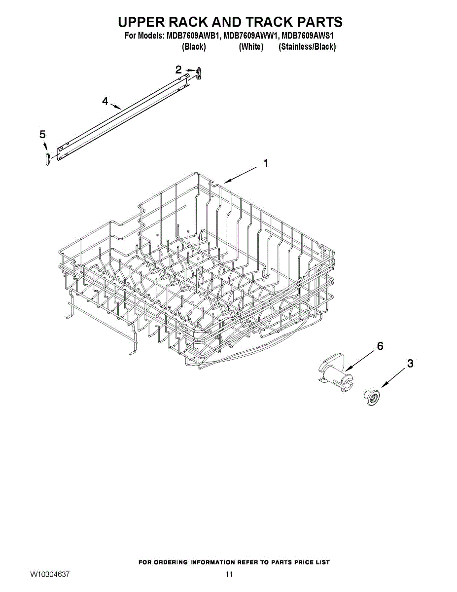 Guides the upper rack smoothly in and out of your dishwasher. Replace if cracked, broken, or wheels no longer roll properly along the track.