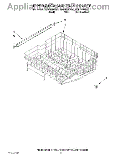 The Upper Dishrack Rail is an OEM replacement part for Whirlpool dishwashers. It guides upper racks in and out for easy access to dishes.