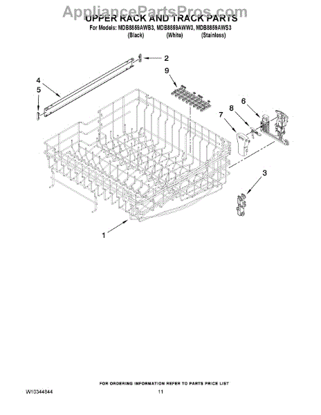 The Upper Dishrack Rail is an OEM replacement part for Whirlpool dishwashers. It guides upper racks in and out for easy access to dishes.