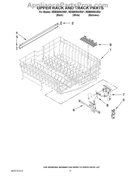 Upper dishwasher rack adjuster assembly. Left hand side. For the right hand side order WPW10153532.