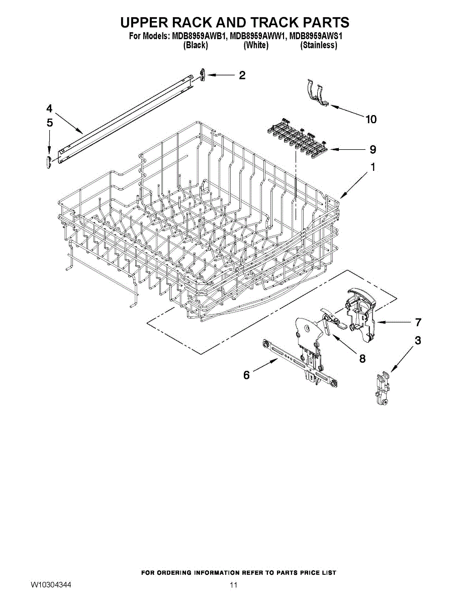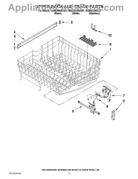 Upper dishwasher rack adjuster assembly. Left hand side. For the right hand side order WPW10153532.