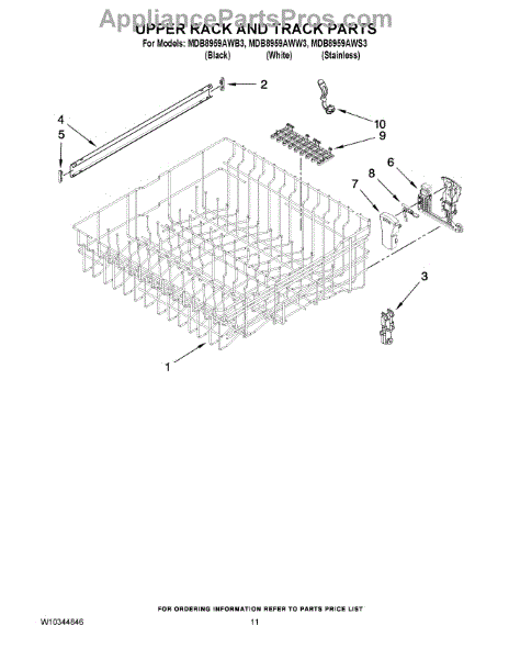 The Upper Dishrack Rail is an OEM replacement part for Whirlpool dishwashers. It guides upper racks in and out for easy access to dishes.