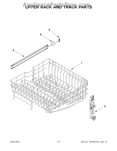 The Upper Dishrack Rail is an OEM replacement part for Whirlpool dishwashers. It guides upper racks in and out for easy access to dishes.