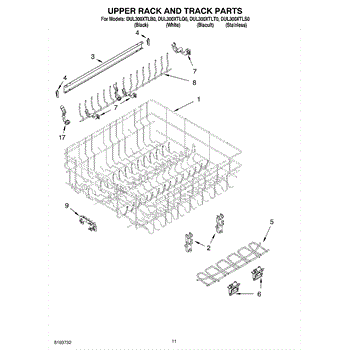 Parts for Whirlpool DUL300XLTQ0: 09 - Upper Rack And Track Parts