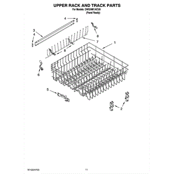 Parts for Whirlpool DW524M1ACU0: 09 - Upper Rack And Track Parts