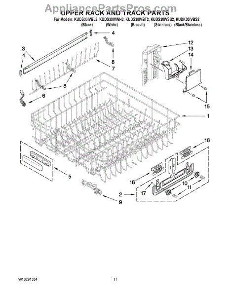 Parts for Kitchenaid KUDK30IVBS2: 09 - Upper Rack And Track Parts