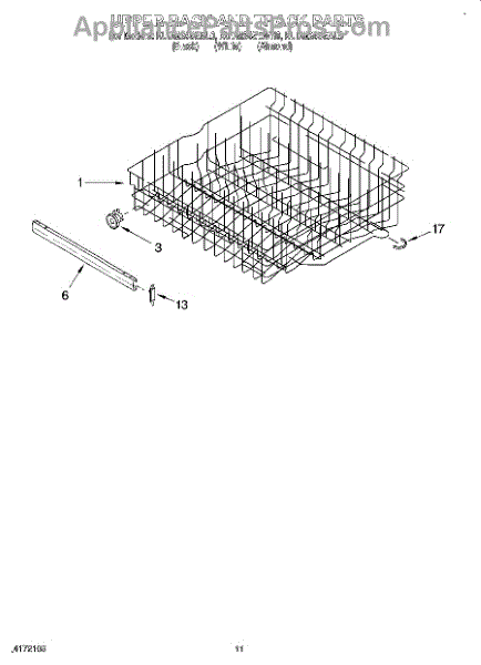 This genuine OEM part is a refrigerator upper dishrack. The upper dishrack is the tray on which dishes are placed on the top shelf of a dishwasher. If the dishrack is no longer sliding on its tracks, or is not staying in place during the wash cycle, it might need to be replaced. Luckily this is a very simple repair.To replace the upper dishrack, simply pull out the old dish rack and lift it up out of its tracks. Once removed from the dishwasher, take the new dishrack and gently slide it into place. Make sure it is placed correctly and that it is running smoothly on its tracks.This replacement part is sold individually and is compatible with Whirlpool, Maytag, KitchenAid, Jenn-Air, Amana, Magic Chef, Admiral, Norge, Roper, and Sears/Kenmore brand dishwashers.