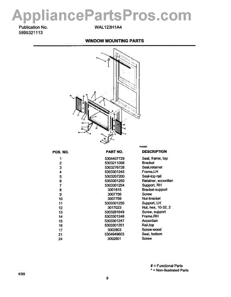 Parts for Frigidaire WAL123H1A4: 09 - Window Mounting Parts