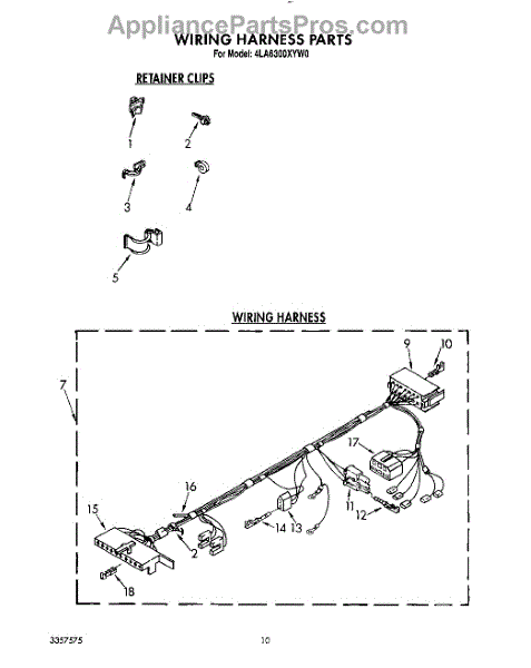 Parts for Whirlpool 4LA6300XYW0: 09 - Wiring Harness Parts