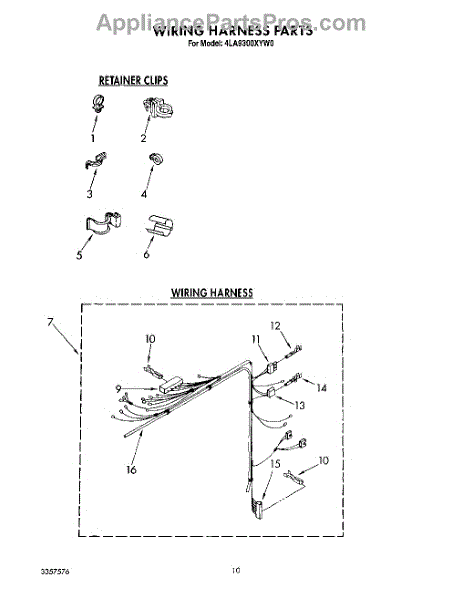Parts for Whirlpool 4LA9300XYW0: 09 - Wiring Harness Parts