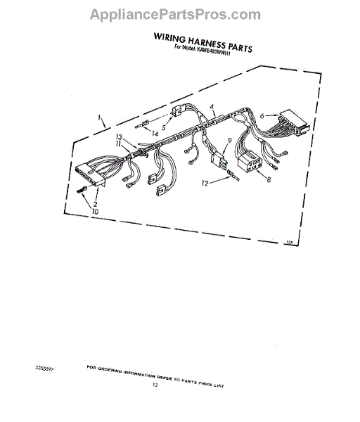 Parts for Kitchenaid KAWE460WWH1: 09 - Wiring Harness Parts