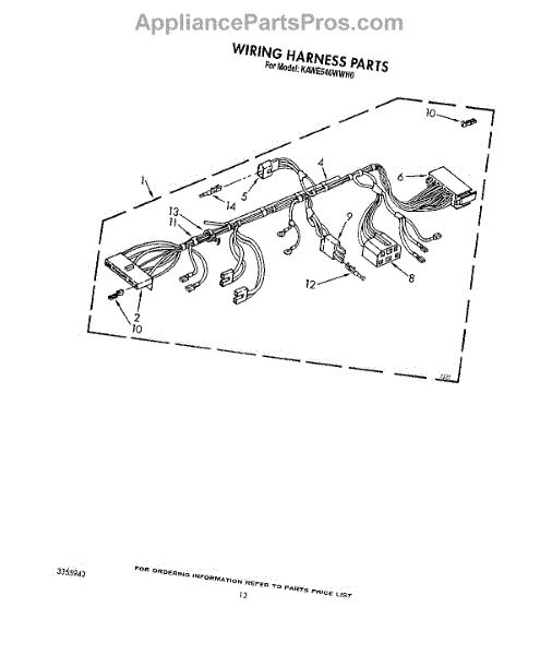 Parts for Kitchenaid KAWE540WWH0: 09 - Wiring Harness Parts