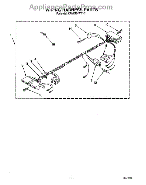 Parts for Kitchenaid KAWE564WWH3: 09 - Wiring Harness Parts