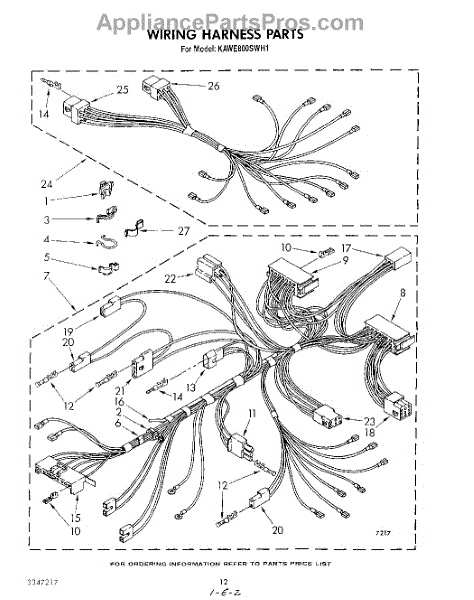 Parts for Kitchenaid KAWE800SWH1: 09 - Wiring Harness Parts