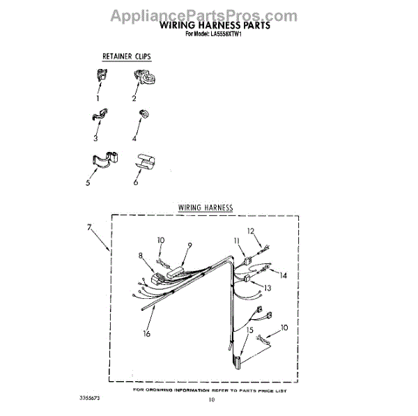 Parts for Whirlpool LA5558XTW1: 09 - Wiring Harness Parts