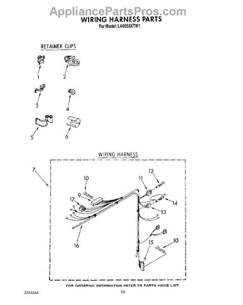Parts for Whirlpool LA6055XTN1: 09 - Wiring Harness Parts