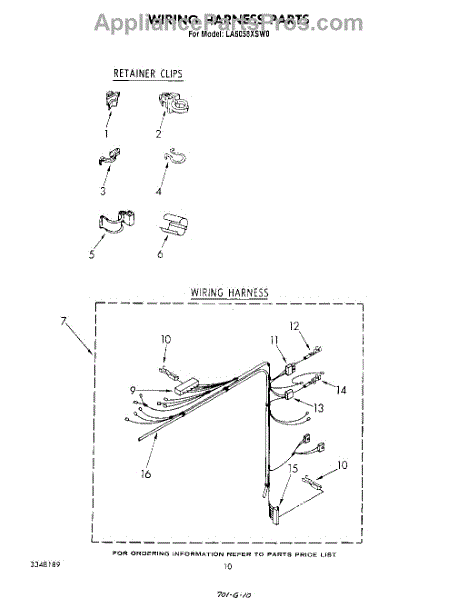 Parts for Whirlpool LA6058XSW0: 09 - Wiring Harness Parts