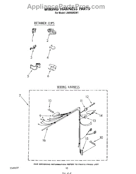 Parts for Whirlpool LA6058XSW1: 09 - Wiring Harness Parts