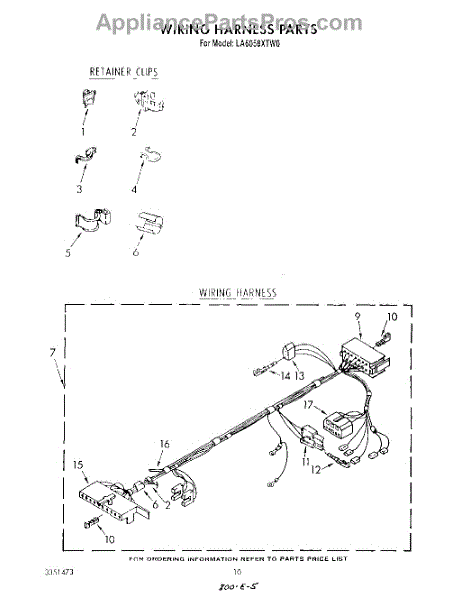 Parts for Whirlpool LA6058XTM0: 09 - Wiring Harness Parts